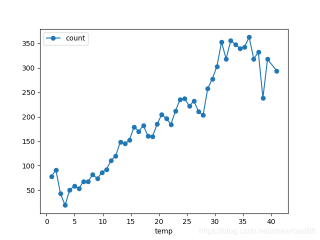 df_train_origin.groupby('temp').mean().plot(y='count', marker='o')