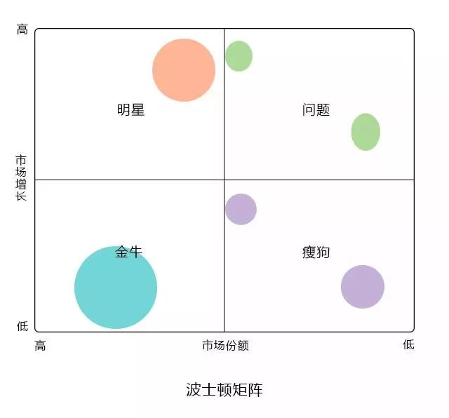 瘦狗: 在低增长市场是具有相对低的市场份额的业务经常是中等现金流的使用者。由于其虚弱的竞争地位,它们将成为现金的陷阱。