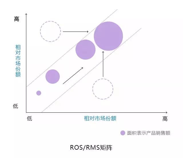 ROS/RMS(Return Of Sales/Relative Market Share)矩阵也称做销售回报和相对市场份额矩阵,主要是用来分析企业的不同业务单元或产品的发展战略。这个模型认为,企业某个业务单元或产品在市场上的销售额应该与其在市场中的相对份额成正比,并且该业务单元或产品的销售额越高,该业务单元或产品为企业所提供的销售回报就应该越高。