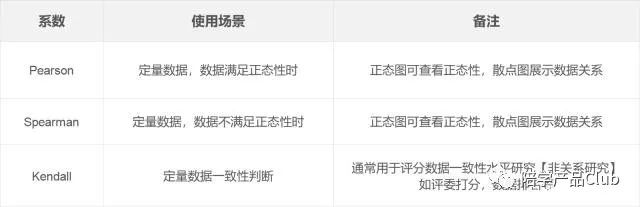 最常使用的是Pearson相关系数;当数据不满足正态性时,则使用Spearman相关系数,Kendall相关系数用于判断数据一致性,比如裁判打分。