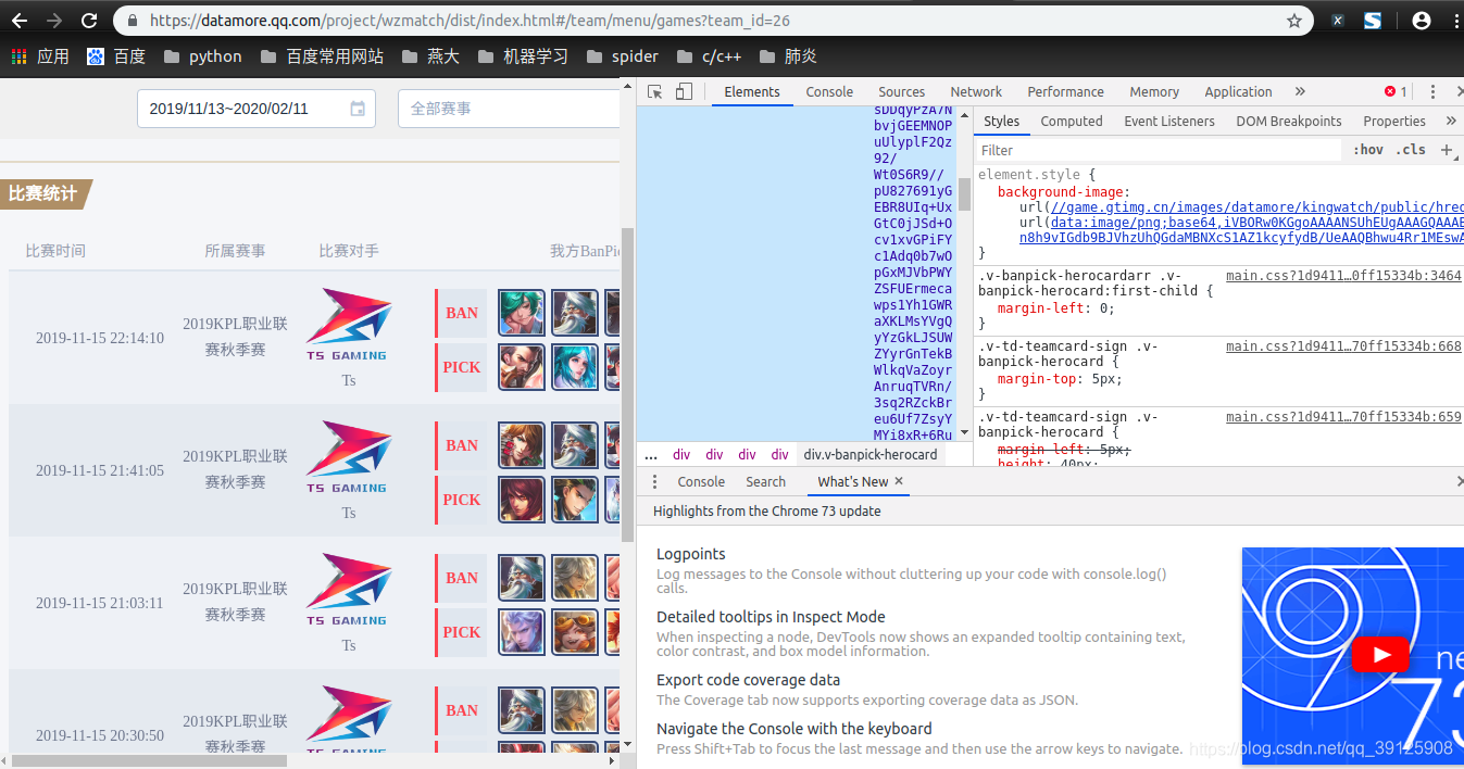 2. 首先我们要先去找数据,如果你会爬虫,可以直接爬。 [ 数据地址 ](https://datamore.qq.com/project/wzmatch/dist/index.html#/team/menu/complex?team_id=26) 。也可以用开发者模式(如果你有兴趣)。