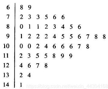 茎叶图的思路是将数组中的数按位数进行比较,将数的大小基本不变或变化不大的位作为一个主干(茎),将变化大的位的数作为分枝(叶),列在主干的后面,这样就可以清楚地看到每个主干后面的几个数,每个数具体是多少。