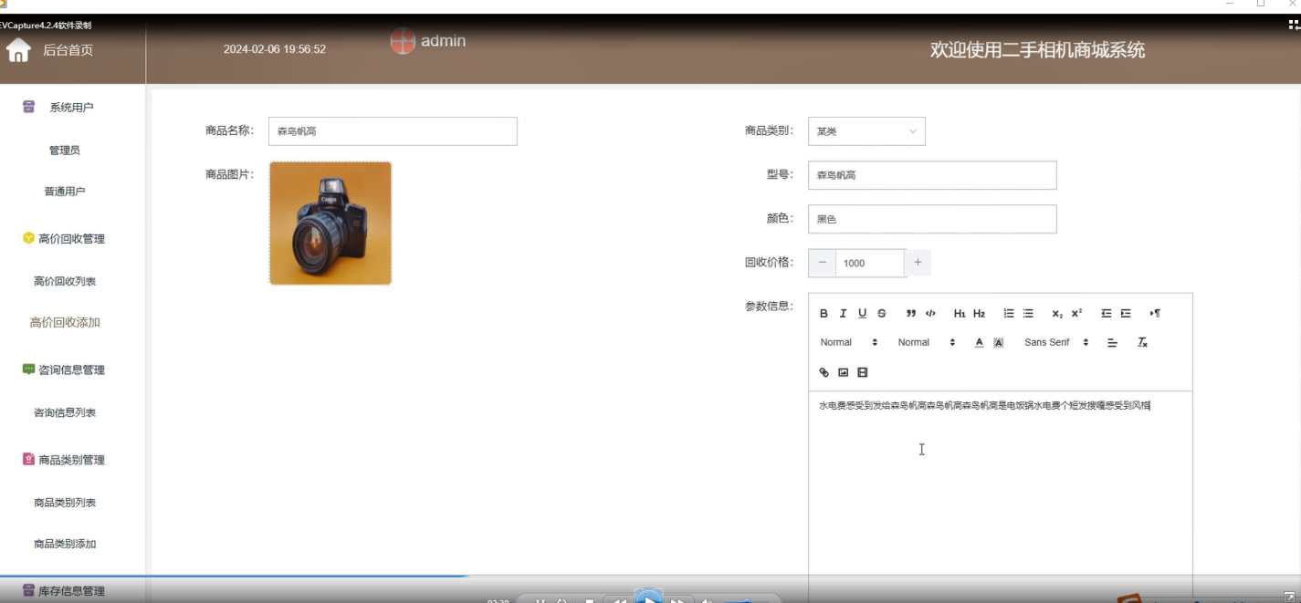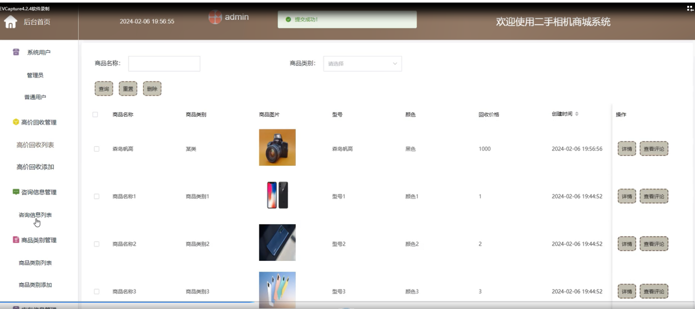 ●商品信息:审核和管理二手相机的商品信息,确保信息的真实性和准确性。