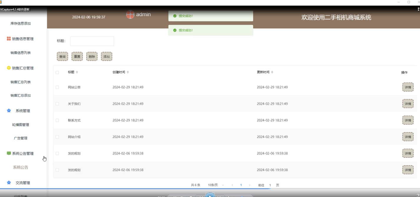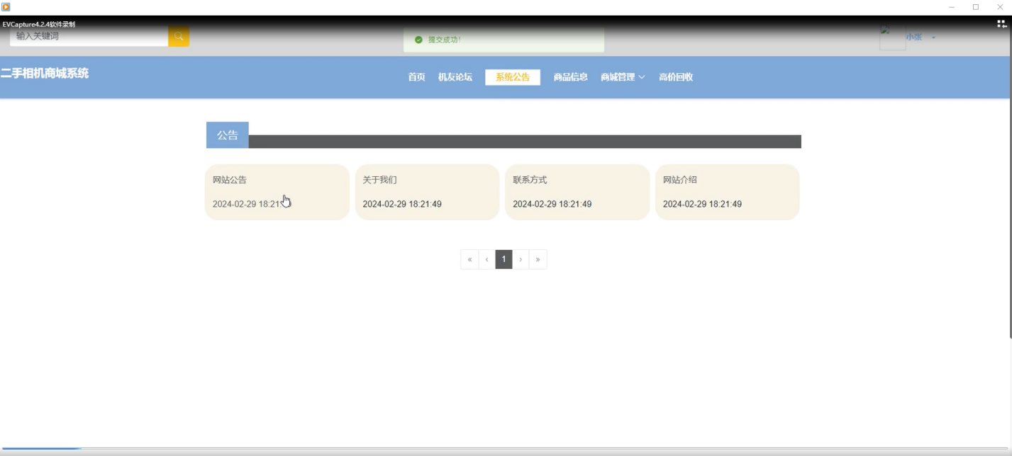 基于Spring Boot技术的二手相机商城系统中的管理人员是可以对维护,管理,发布通知公告信息,界面如下图所示。
