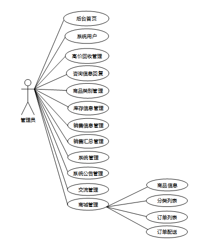 图2-4基于Spring Boot技术的二手相机商城系统管理员角色用例图
