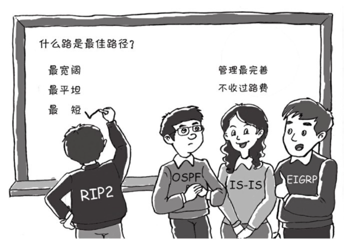 OSPF:基于“链路状态”,像绘制一张详细的网络地图,然后各自计算最短路径。适用于大型企业网。