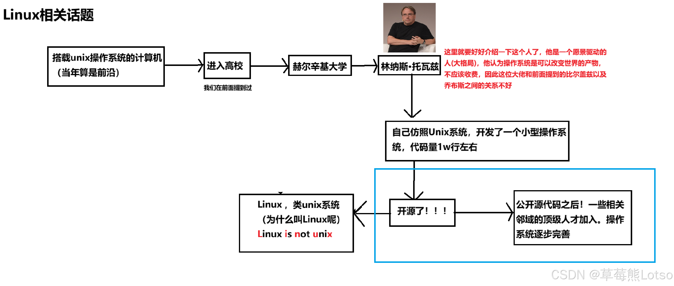 - 通过一种自由和开放源代码的类UNIX操作系统。在开源模式下,开发者能够自由获取、修改和共享源代码,无需支付任何费用。Linux的内核由林纳斯·托瓦兹在1991年首次发布,之后在加上用户空间的应用程序之后,就成为了Linux操作系统。就是Linux
