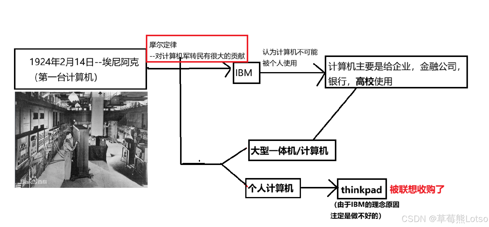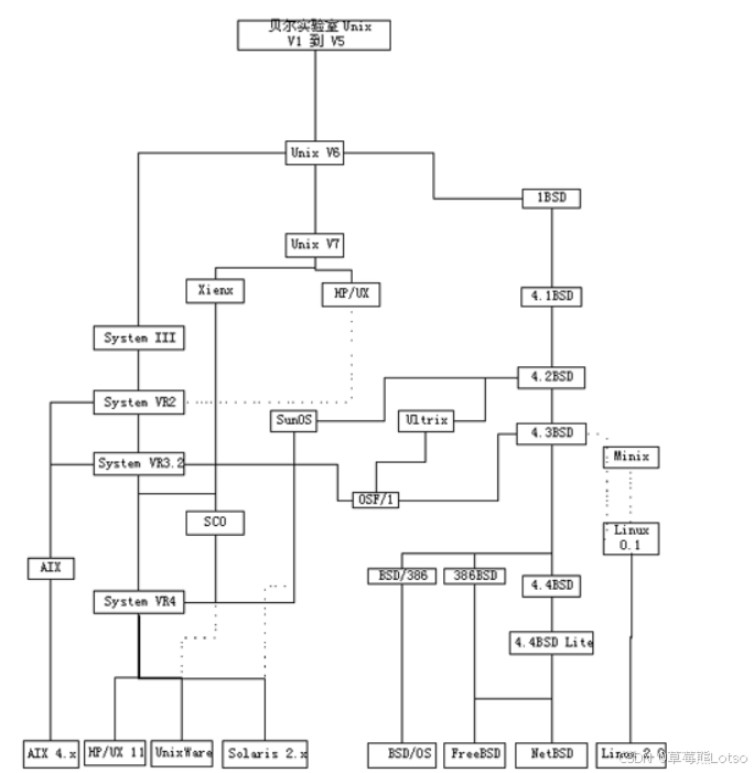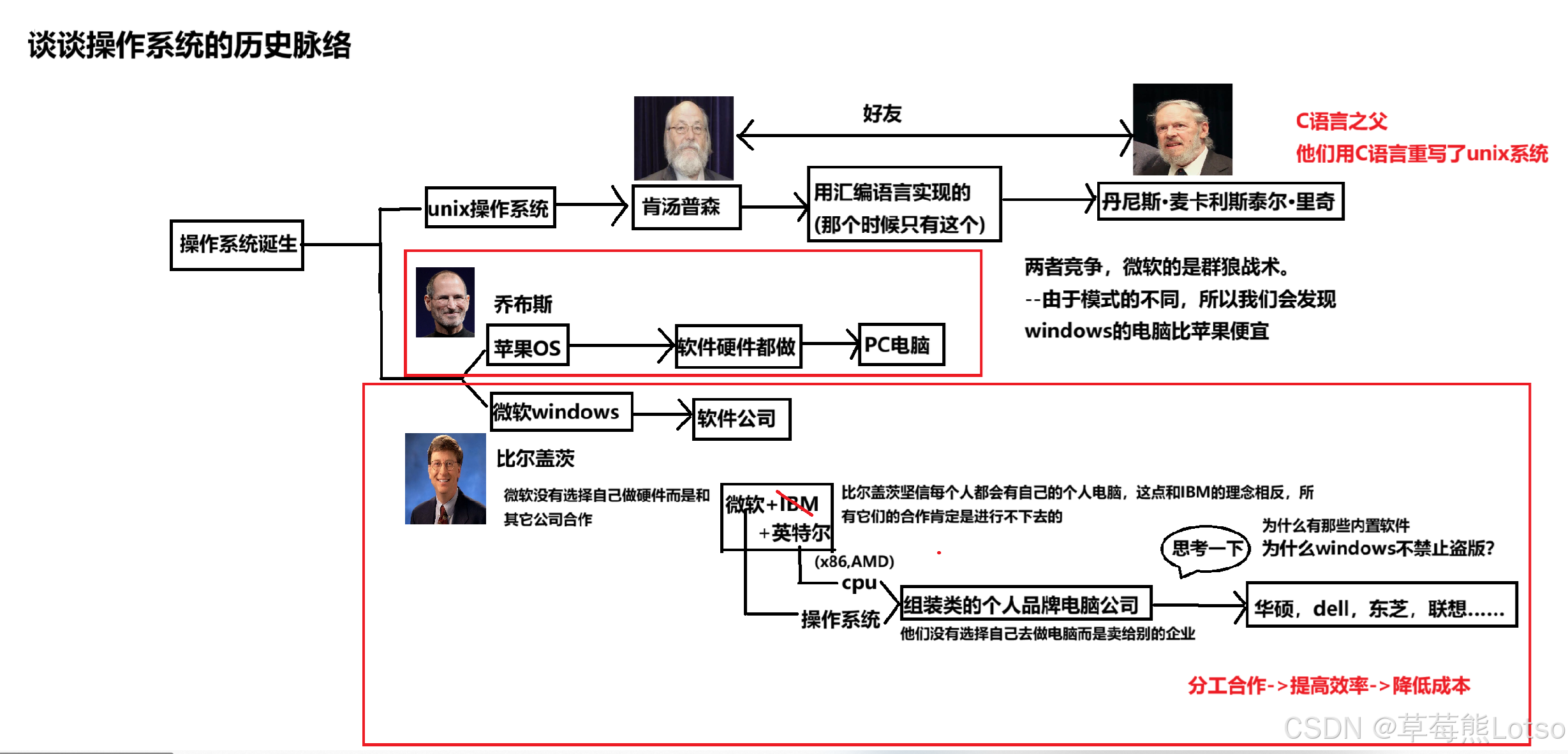 --我们要聊操作系统,那么首先就得对计算机的历史背景有一些了解。博主在这里画了一个比较清晰的脉络图(附有部分注释),大家直接看一下就行。