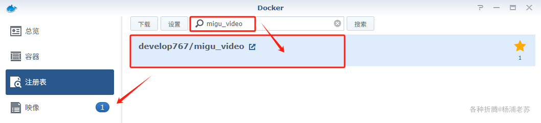 在注册表中搜索 migu_video ,选择第一个 develop767/migu_video,版本选择 latest