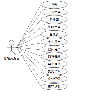 管理员包含了管理员、教师用户及学生用户三部分,管理员拥有最高的权限,实现了对作业管理系统信息的增删改查操控