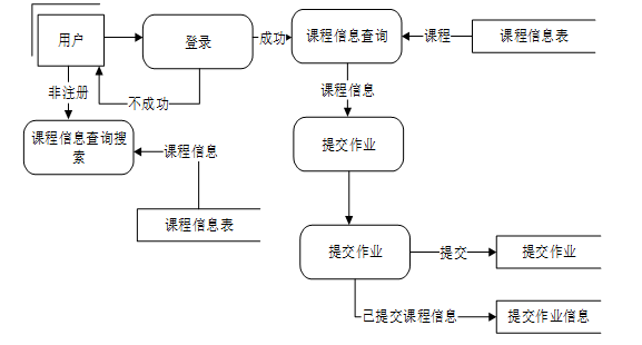 开发系统的数据流图。就是作业管理系统最主要的一个目的就是达成用户对课程信息的提交作业,图2-3就