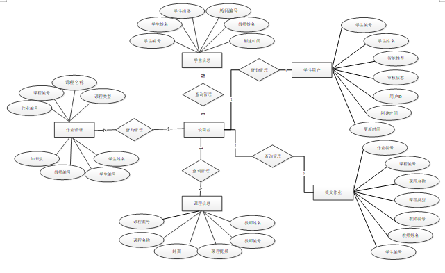 下面是整个作业管理系统中主要的数据库表总E-R实体关系图。