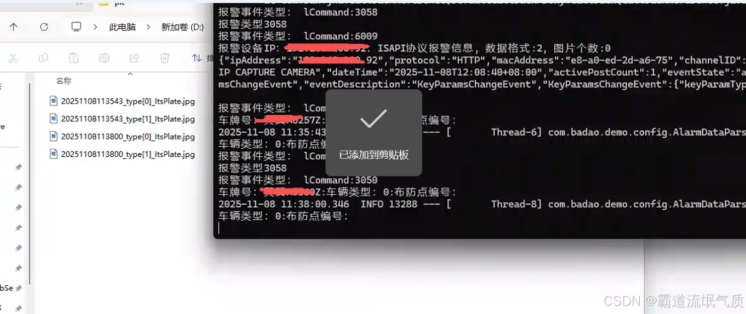抓拍图片进行存储到本地磁盘,且存储车牌号数据到redis中,最终结合业务流程并进行手动抓拍