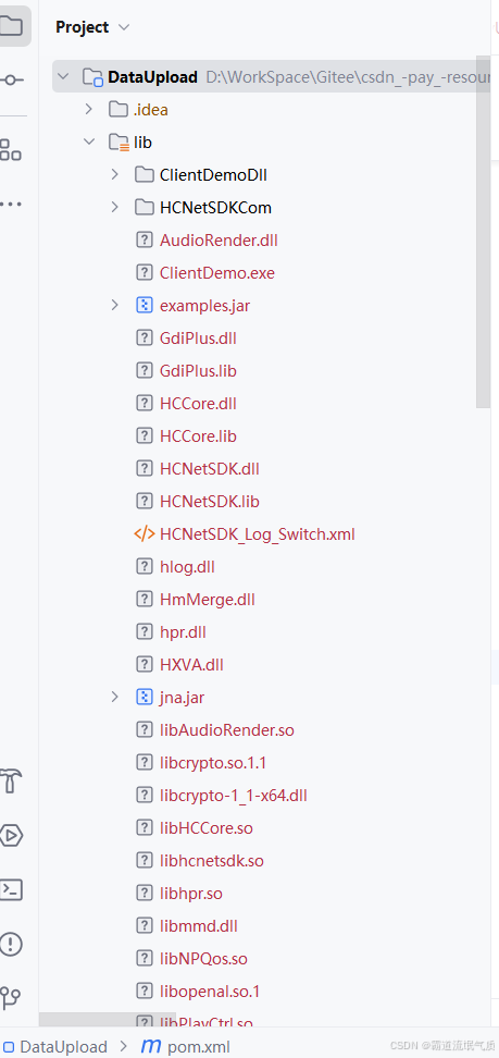 去海康威视官网下载对应的sdk包,在项目目录下新建lib目录,将所有的lib资源全放在此目录下,