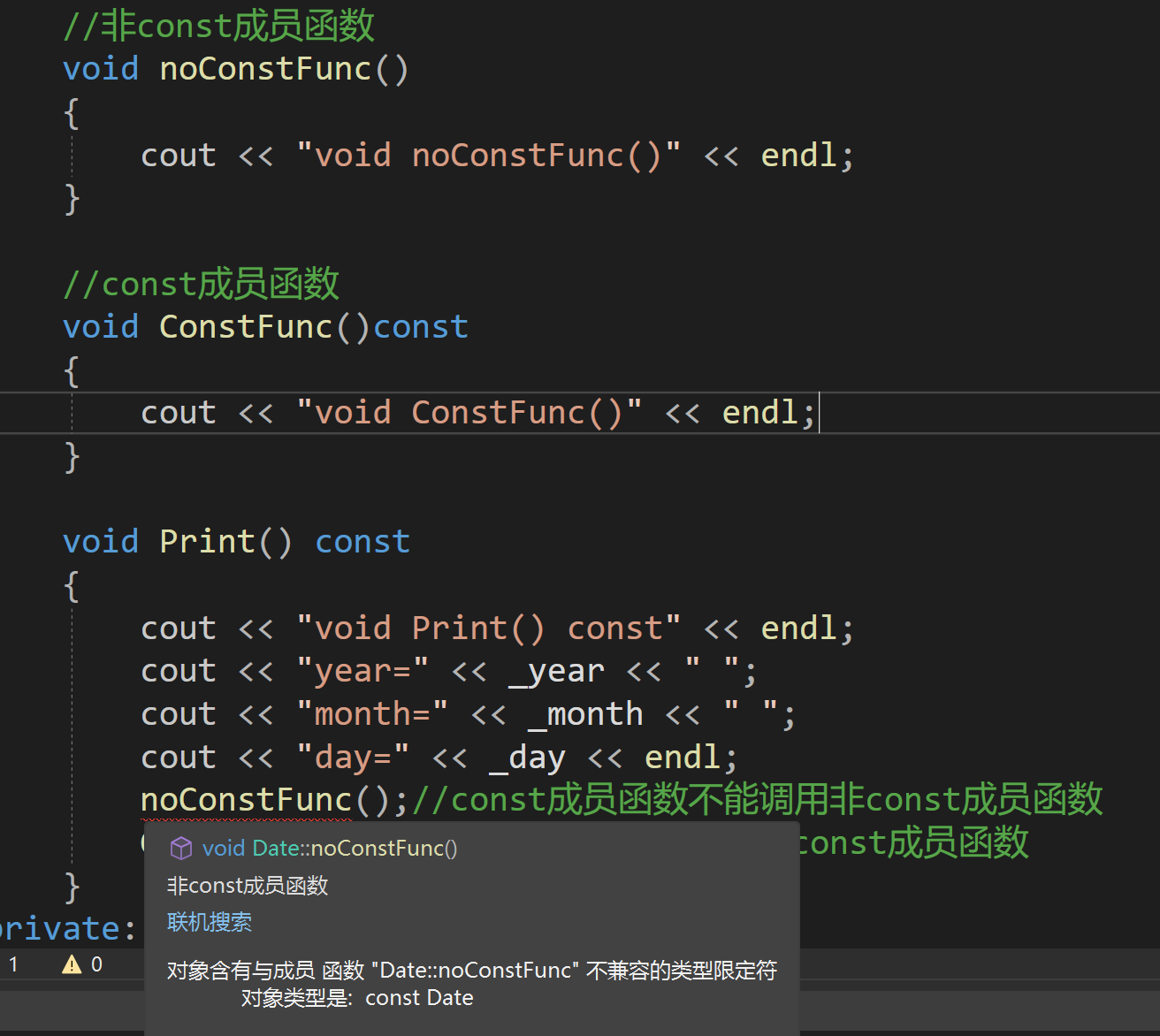 //noConstFunc();//const成员函数不能调用非const成员函数