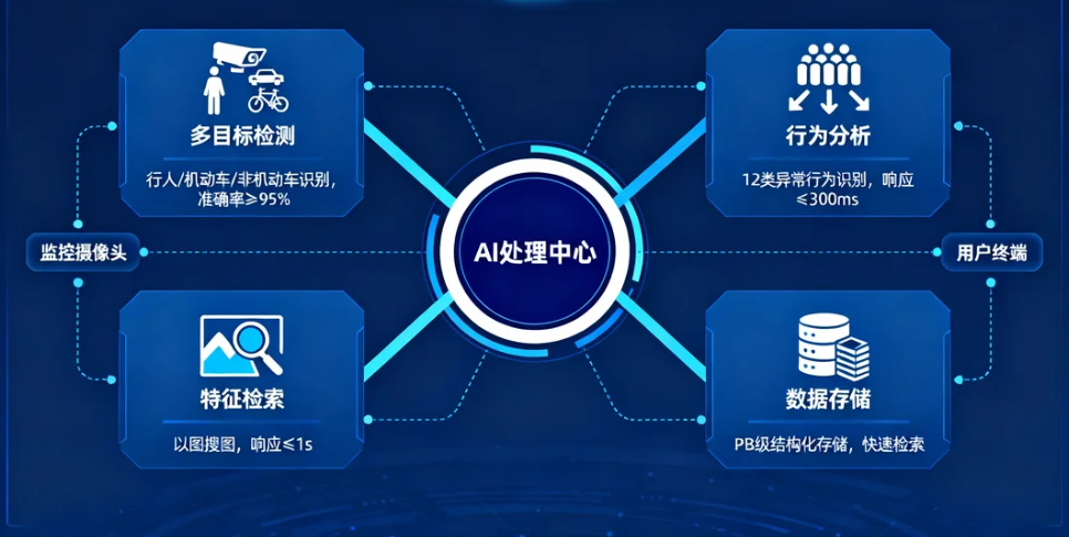 - 特征检索:支持对特定目标的以图搜图,检索响应时间≤1s;