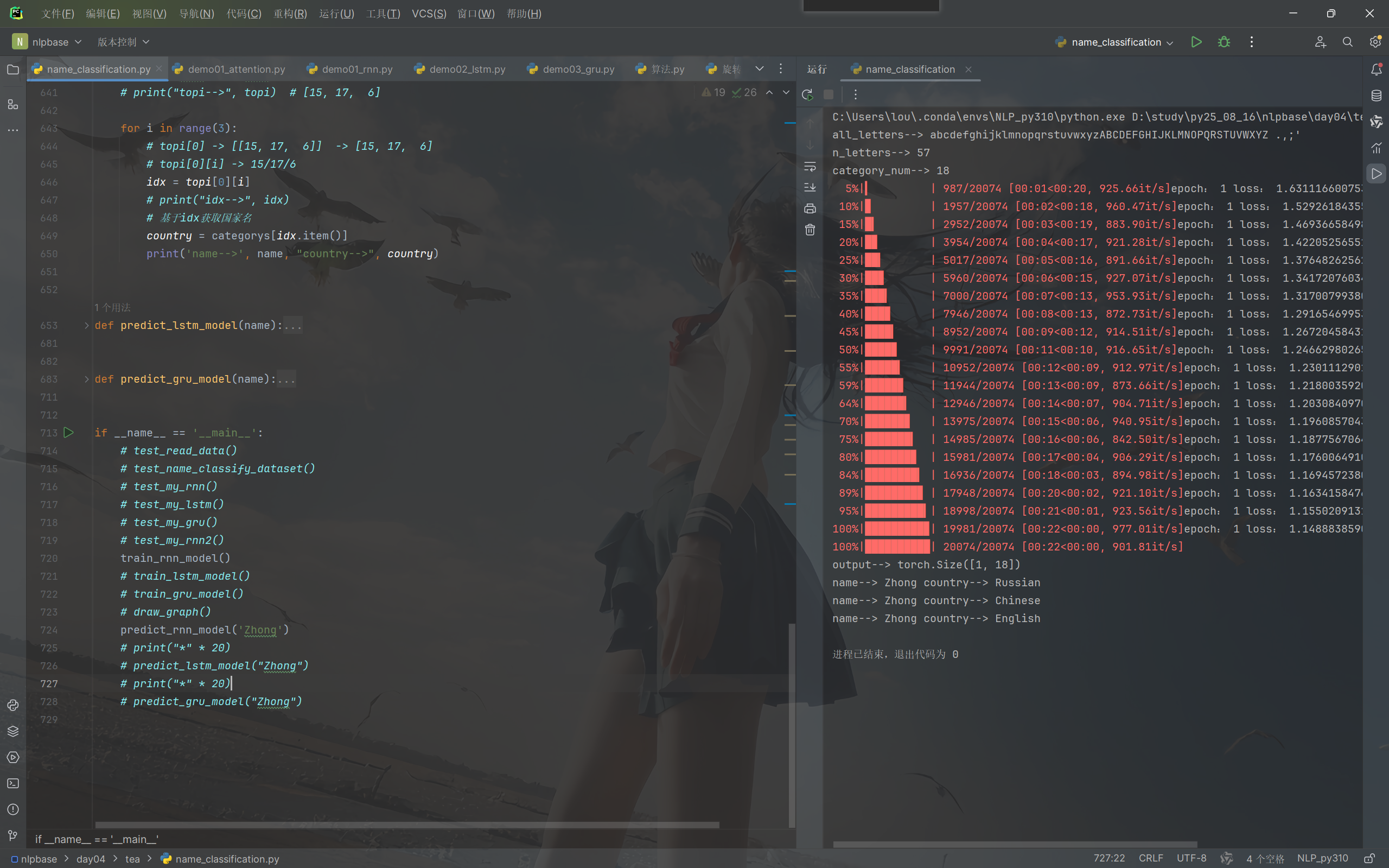 详细介绍:RNN实战案例_人名分类器(包括RNN,LSTM,GRU三种模型)