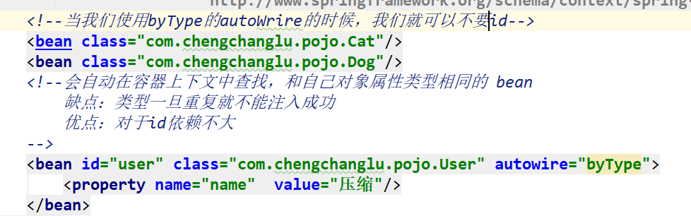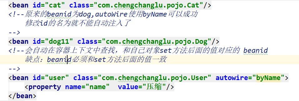 byName的时候,需要保证所有bean的id唯一,并且这个Bean需要和自动注入的属性的set方法的值一致!