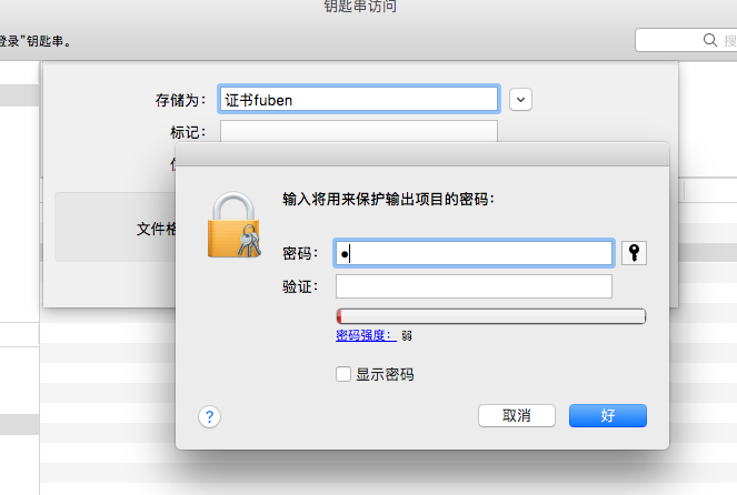 这个密码不是账号密码,而是一个保护证书的密码,是p12文件的密码,此密码设置后没有其他地方可以找到,忘记了只能删除证书重新制作,所以请务必记住密码。还有为了安全起见,密码不要太简单。 证书名称是你为了在证书列表里面便于区别的一个字符,自己好辨识就可以,尽量是是字母和数字之类