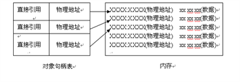 物理地址存储在对象句柄表中,物理地址由:段地址*16+偏移地址组成,物理地址就是这个对象在内存中的绝对路径。