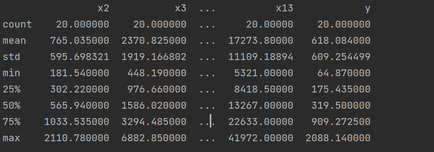 #导入数据处理模块 import pandas as pd import numpy as np #导入绘图模块 import matplotlib.pyplot as plt # 导入绘图模块 import matplotlib.pyplot as plt import numpy as np import pandas as pd df = pd.read_csv(r"D:\python_data\data_caizhengshouru.csv",encoding='gbk',index_col=0).reset_index(drop=True) print(df.describe())