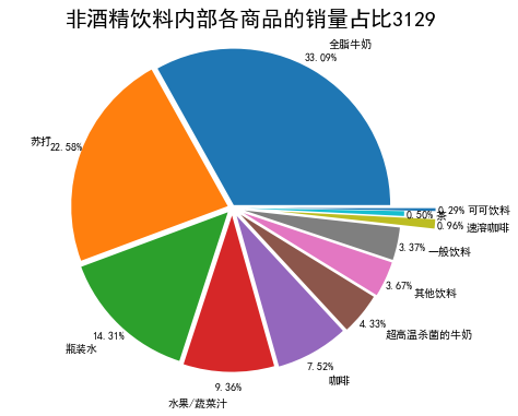 代码四:非酒精饮料内部商品的销量及其占比