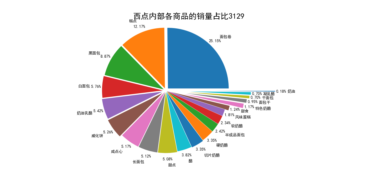 代码七:西点内部商品的销量及其占比