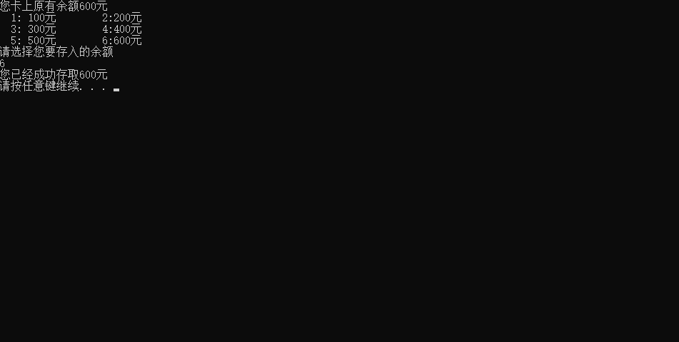 char LoginMenu[][20] = { "取款", "存款", "查询余额", "修改密码" ,"退卡"};