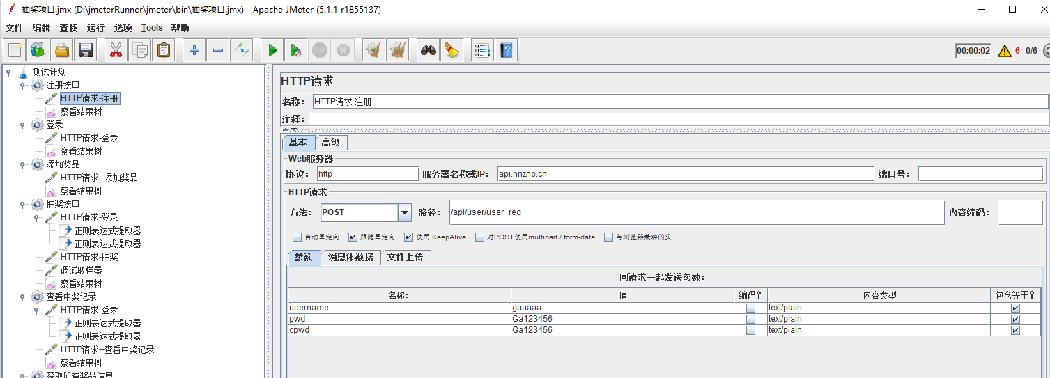 作为初学者,记录下用jmeter实现抽奖项目的过程。项目网址http://doc.nnzhp.cn/index.php?s=/5&page_id=19。