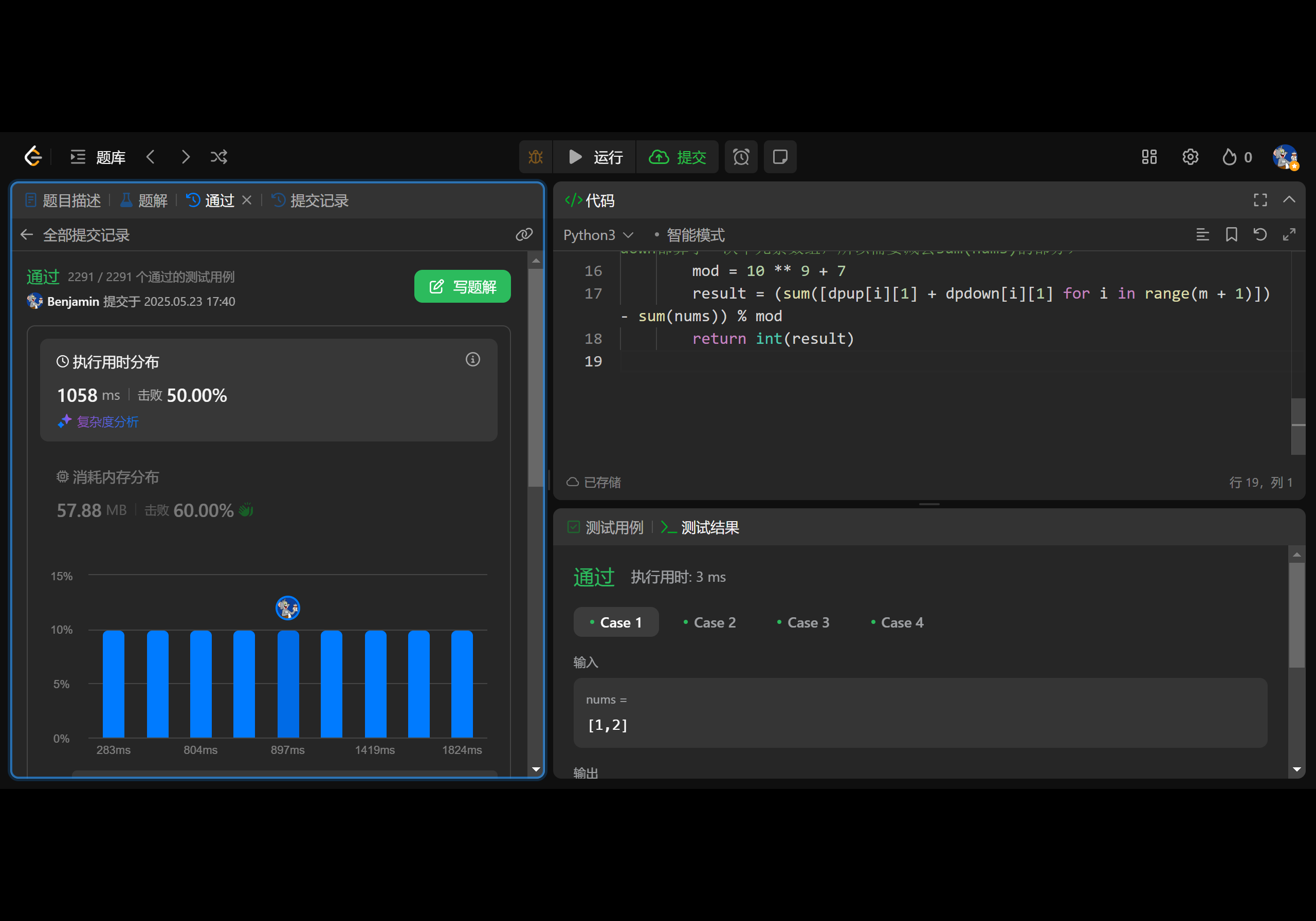 # 第四步,最终的sum(dpup)+sum(dpdown)-sum(nums)即为题解(因为up和down都算了一次单元素数组,所以需要减去sum(nums)的部分)