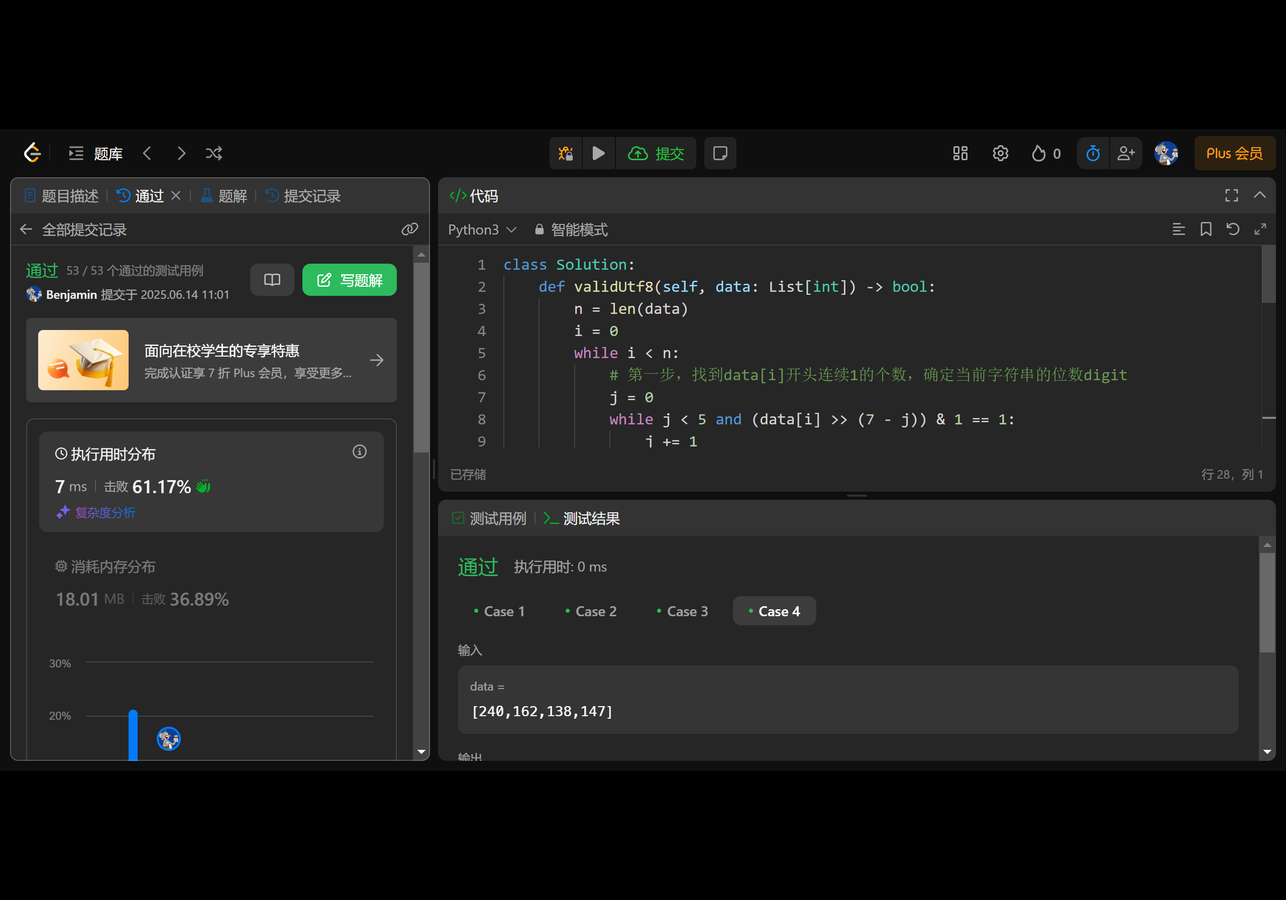 给定一个表示数据的整数数组 data ,返回它是否为有效的 UTF-8 编码。
