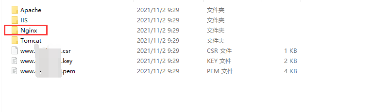 将证书压缩包解压后 复制里面的Nginx文件夹 拖到云服务器中的 Nginx解压目录 conf 文件夹下