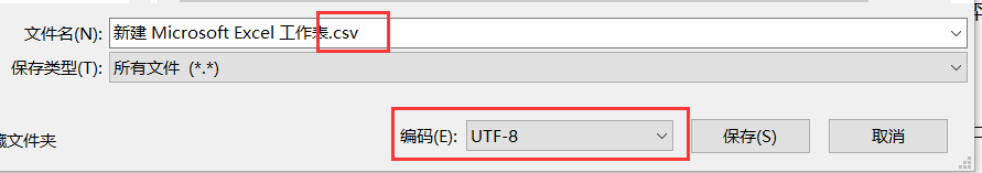 将CSV文件以文本编辑打开方式打开,另存为(command+shift+s),选择UTF-8格式,并把文件拓展名改为.csv,存储。