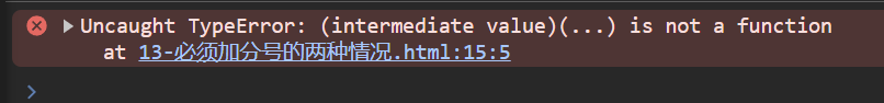 这就变成了:1 后面跟着立即调用一个函数,而这是非法的,因为 1 不是一个可以调用的函数。所以浏览器会报错。