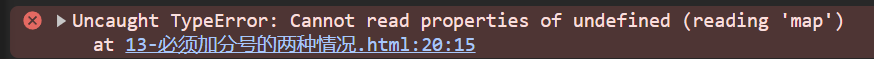 JavaScript 在这里会误以为 [1, 2, 3] 是在跟前一行 arr 做某种操作,具体来说,JavaScript 会试图将 [1, 2, 3] 当作数组索引器来看,