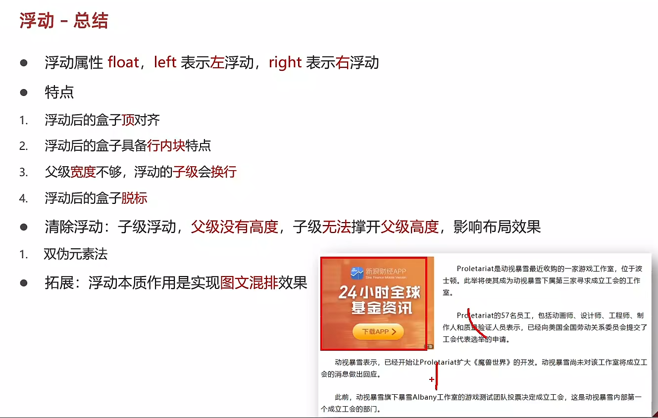 1、关于浮动 导致 脱标 的直观感受和特点总结