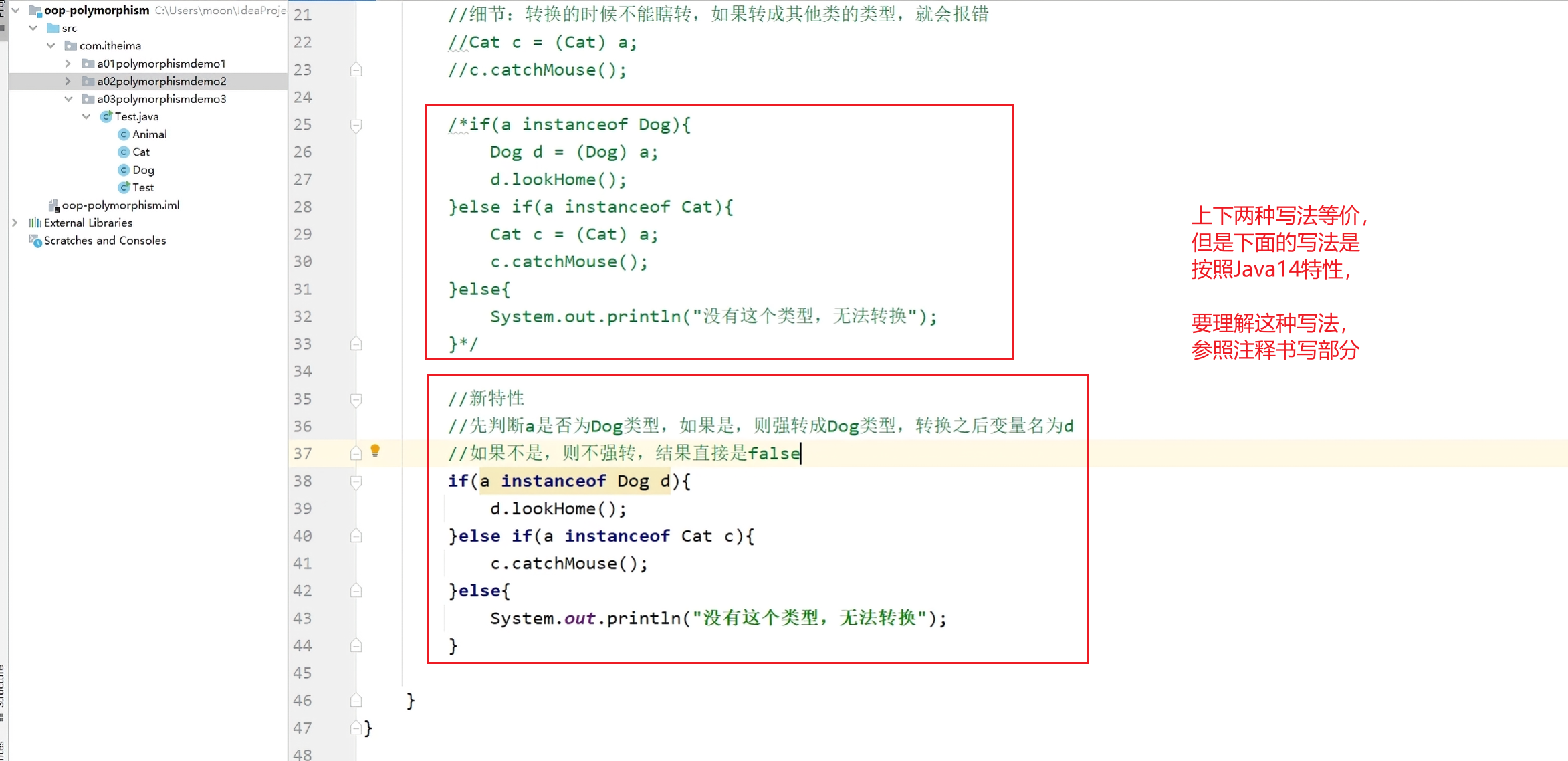 2、关于类型强制转换,Java14新引入的特性,写法注意理解和掌握。