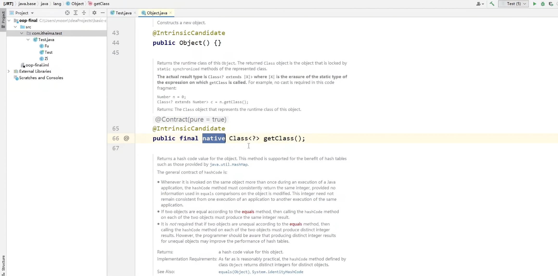 native关键字就表示,当前的这个getClass()方法的方法体,是调用本地C语言或者汇编写的代码。