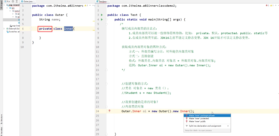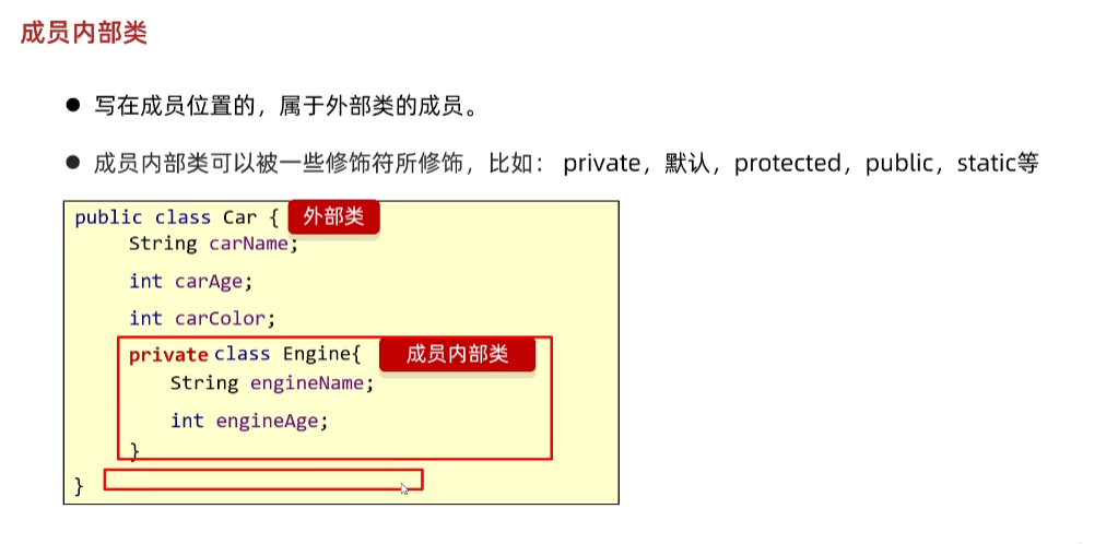 一旦内部类用私有private修饰,就只能在本类里面使用,在外界就不能使用了。