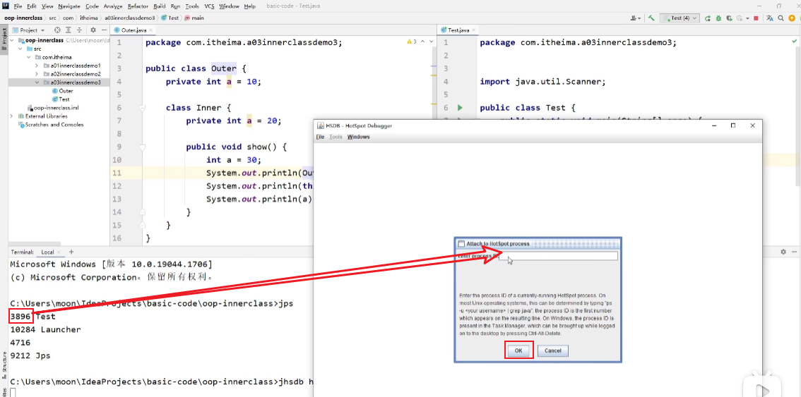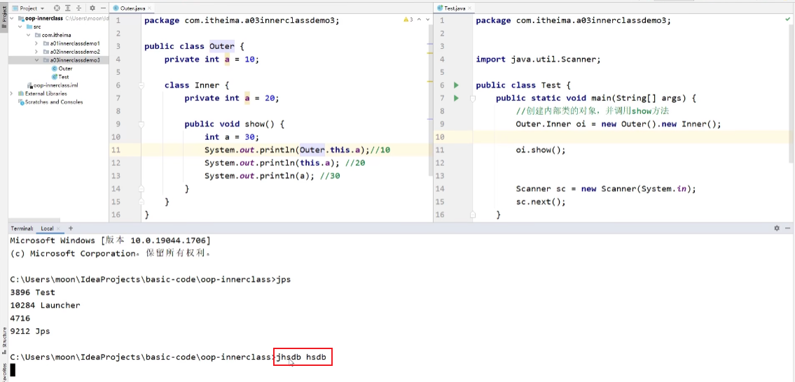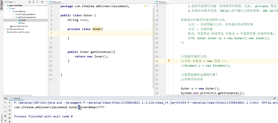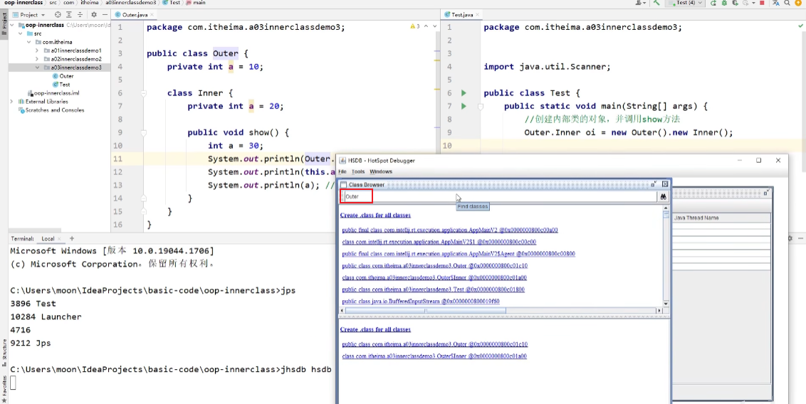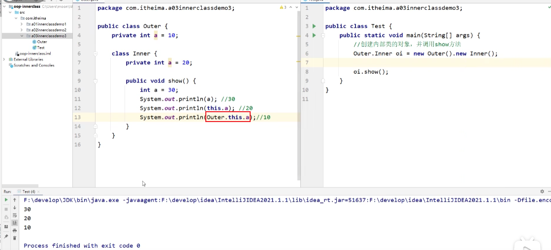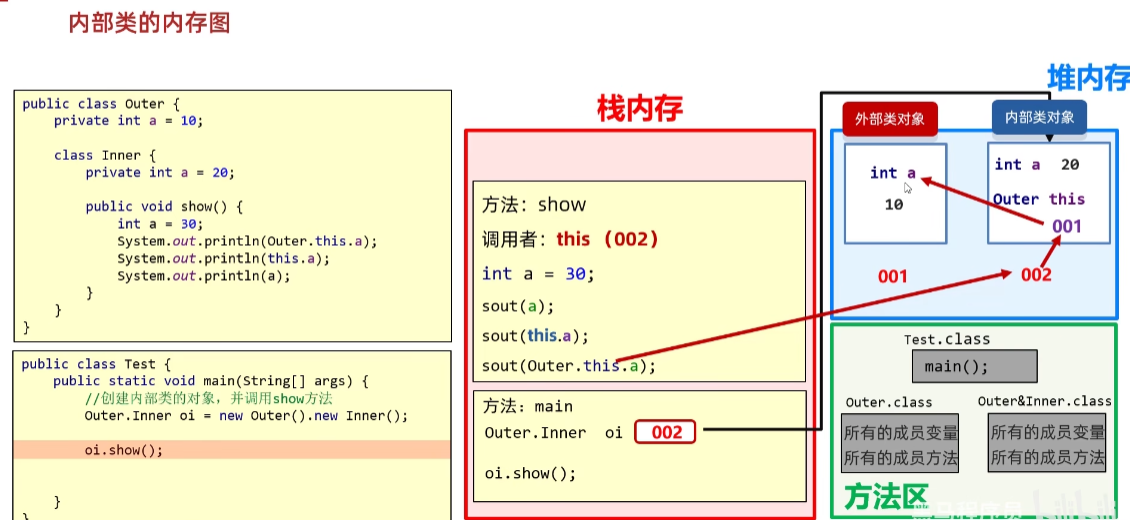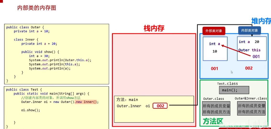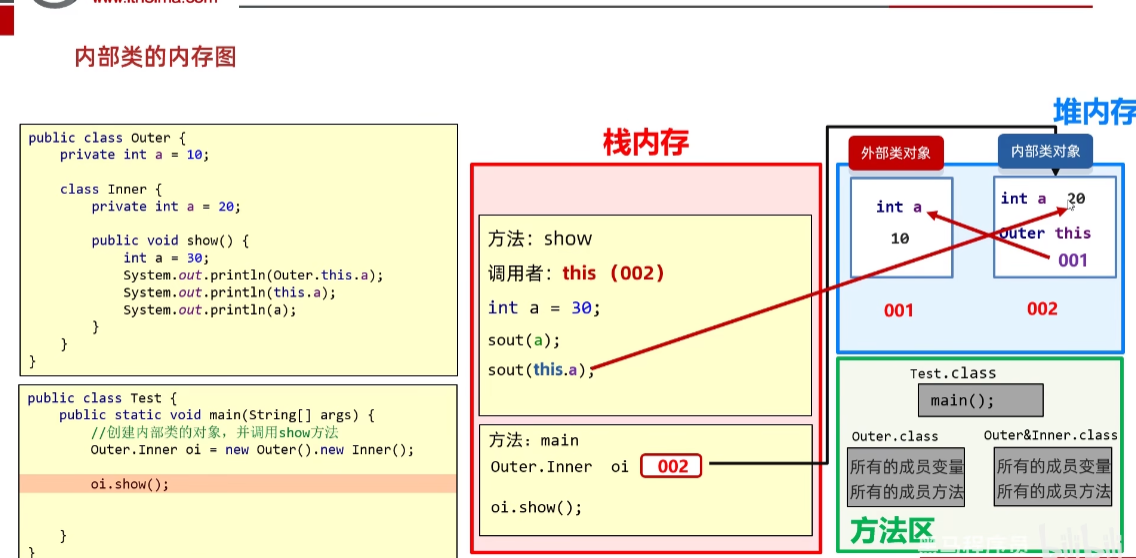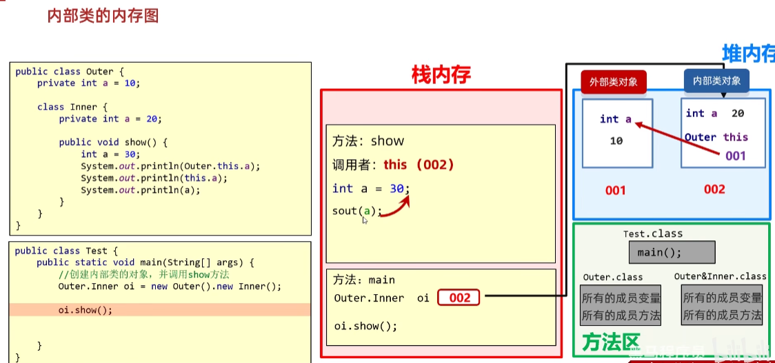这个this就是记录外部类对象的地址,所以上面才能写 Outer.this.a