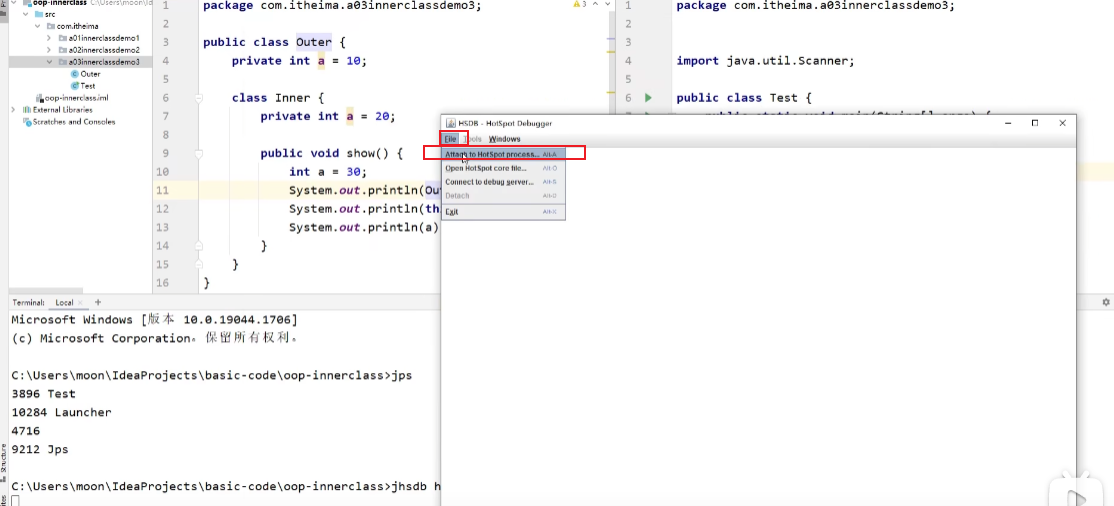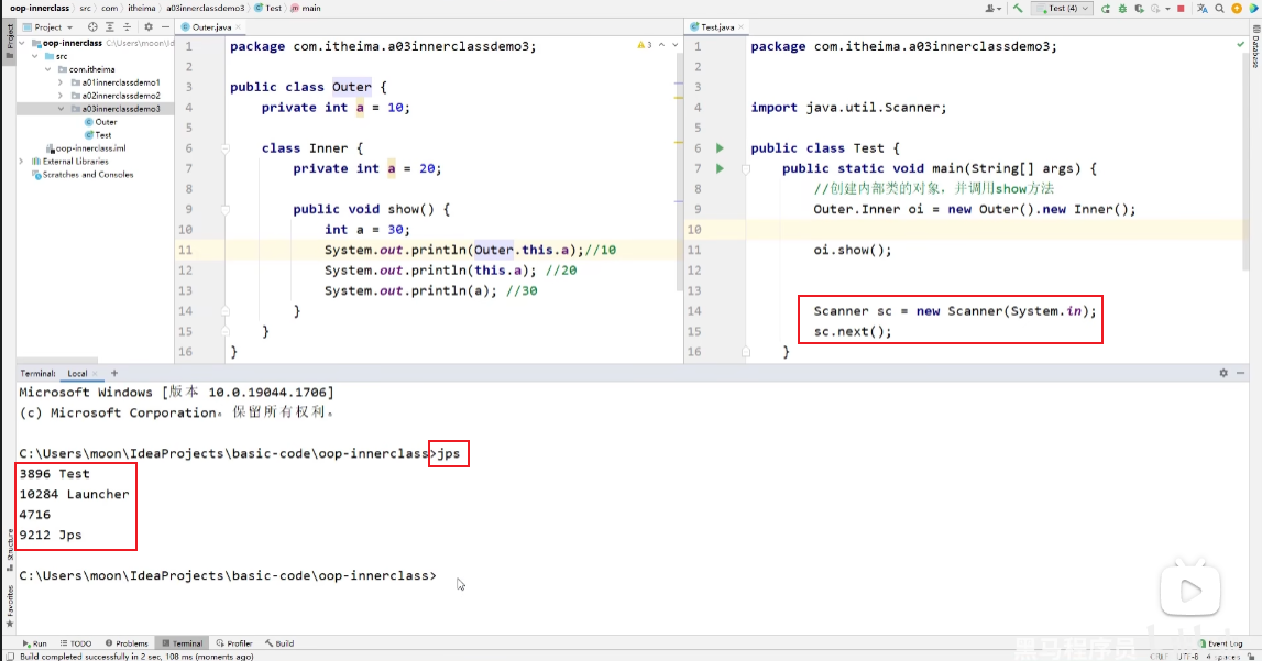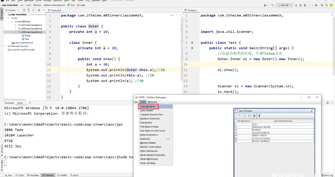 内部类打印时,是采用$进行区分的,$左边是外部类的类名,$右边是内部类的类名。