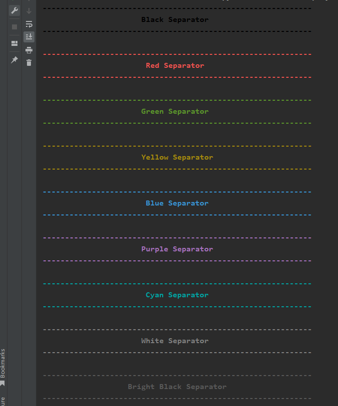 - 每种颜色显示两次分隔线,中间夹杂居中消息(如 “Red Separator”),使输出更美观。