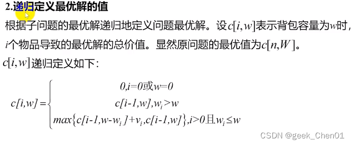 步骤2:c[i,w]递归式;