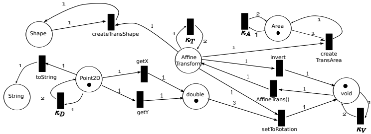 κ_D,它消耗1个Point2D令牌,产生2个。这样,一个pt变量就可以被复制,分别用于调用getX和getY。