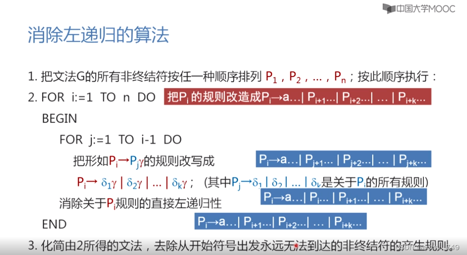 消除左递归的算法如下: