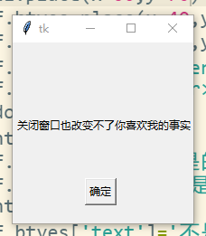 label = Label(window,text = '关闭窗口也改变不了你喜欢我的事实')