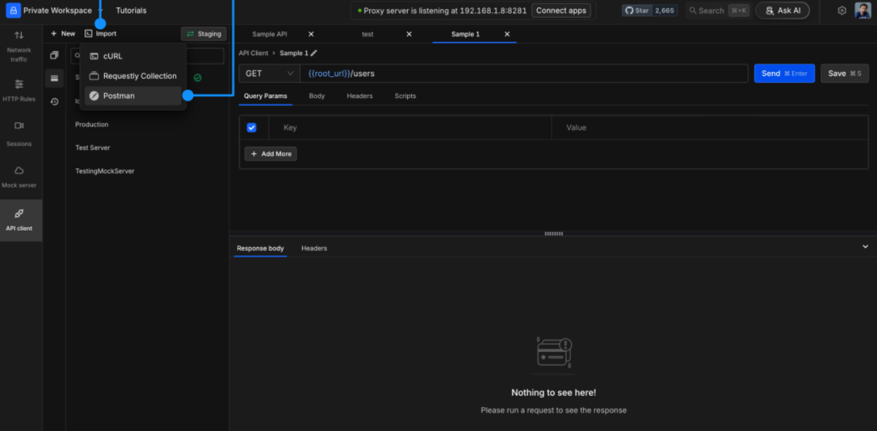 一键从 Postman、Charles Proxy、ModHeader、Resource Override 等工具直接导入配置,无缝衔接。