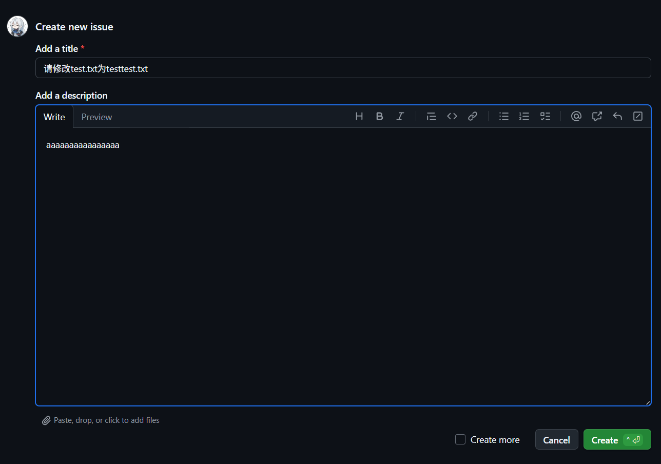 - 填写问题的标题和描述,可以为问题添加标签(如 bug、enhancement 等),并指派给相关人员。