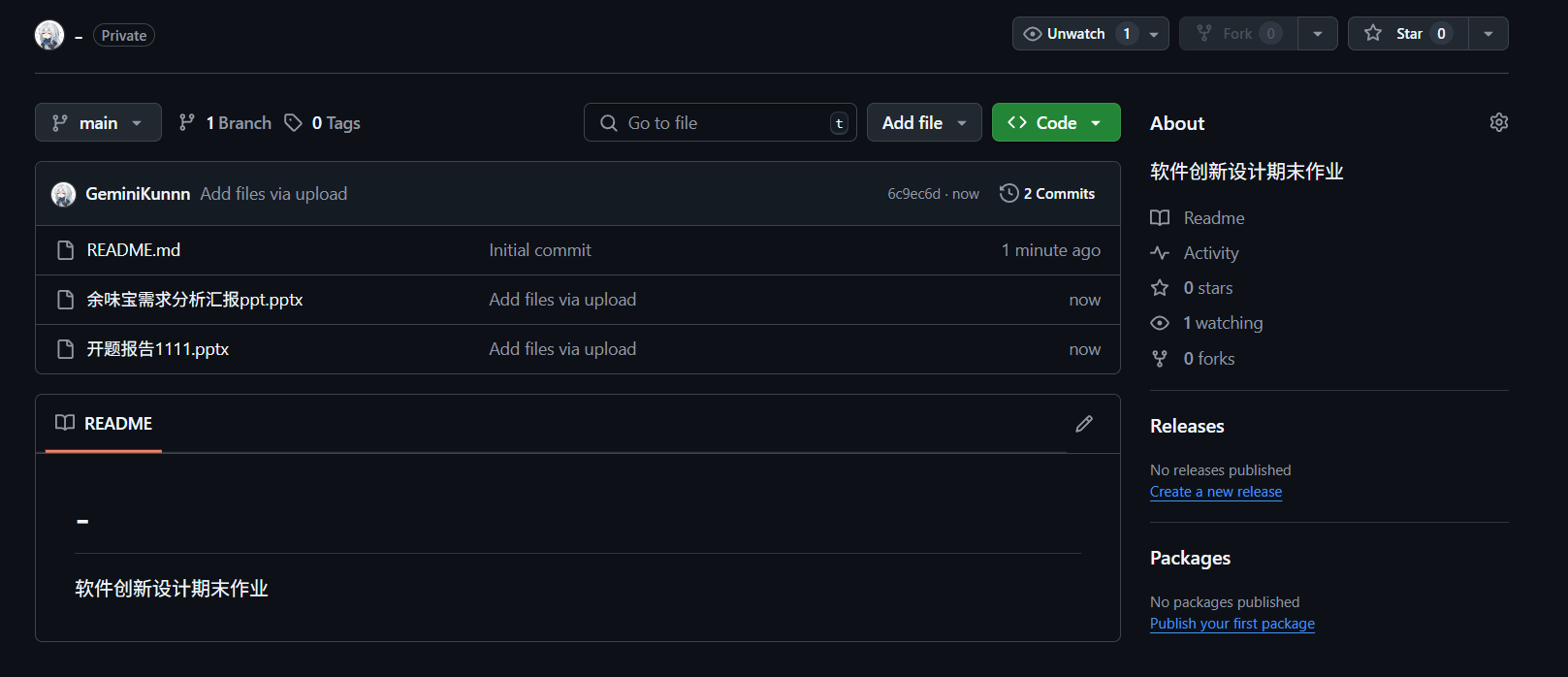 创建完毕后,将之前制作的ppt上传至仓库中的main分支