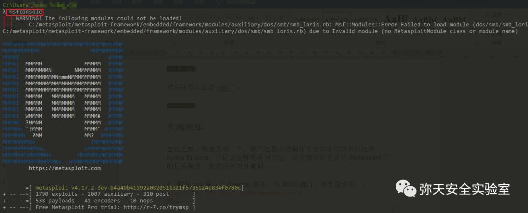 然后就可以启动msf了: